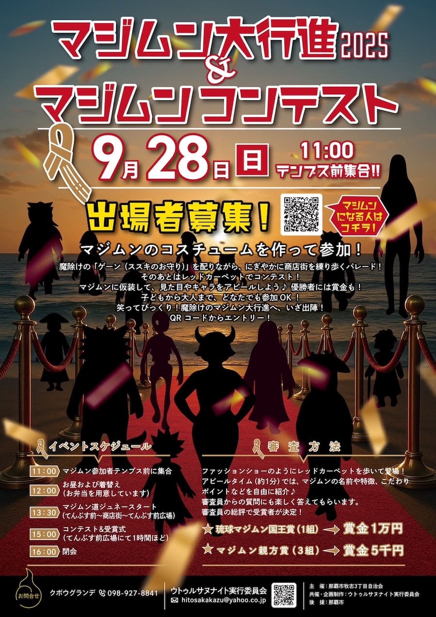 2025年9月28日(日)、那覇市で「マジムン大行進2025&マジムンコンテスト」が開催される。牧志3丁目自治会が主催となり、歴史と文化を再認識しながらマチグヮーの元気を発信するイベント。