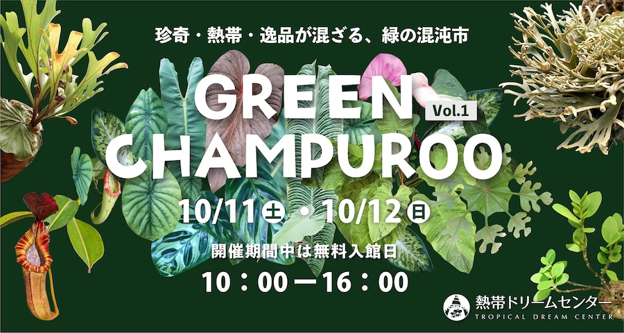 2025年10月11日(土)・12日(日)の2日間、海洋博公園・熱帯ドリームセンターにて、植物イベント 「GREEN CHAMPUROO -Vol.1-」 が初開催される。