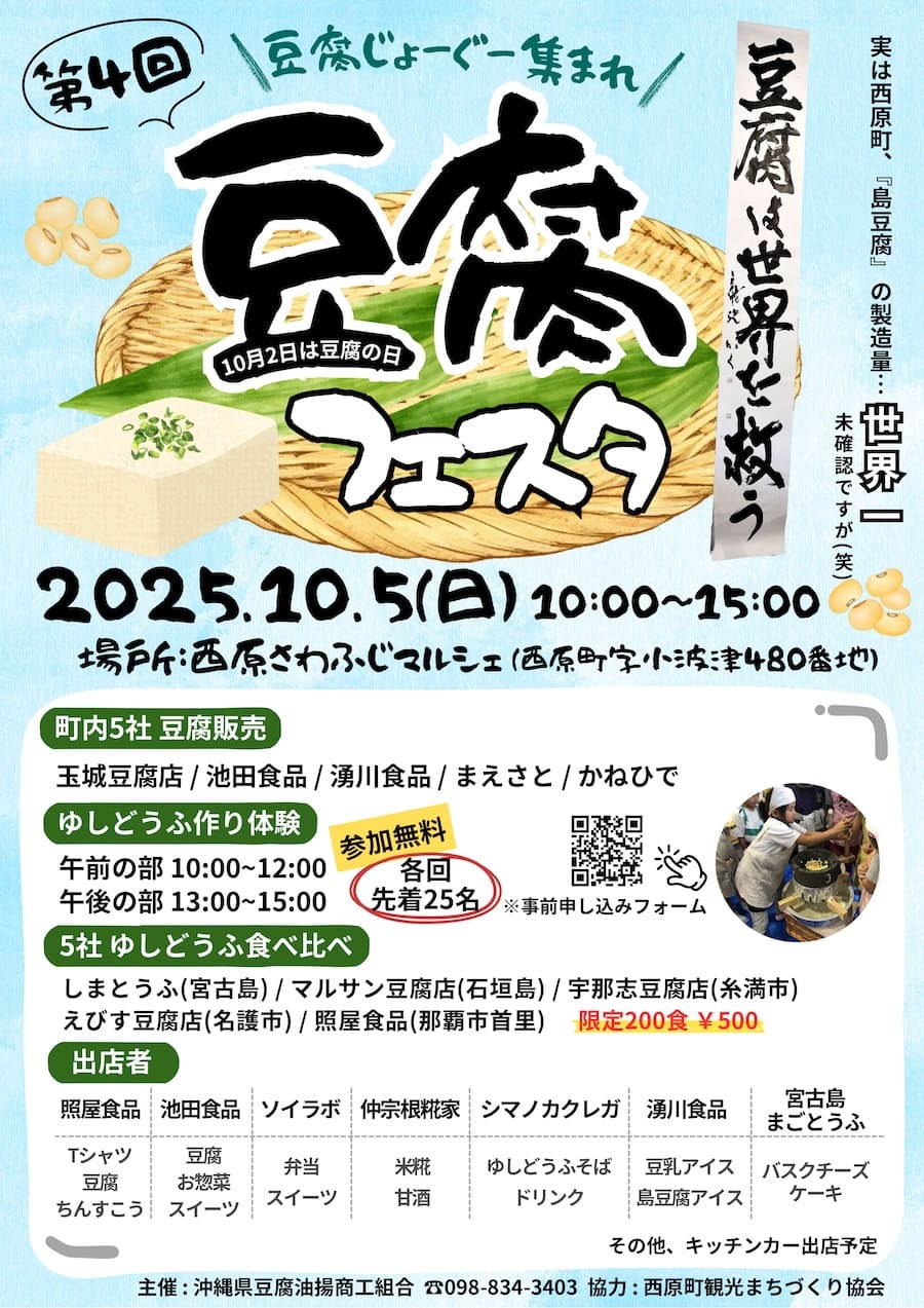 2025年10月5日(日)、「第4回 豆腐フェスタ」が西原さわふじマルシェにて開催される。