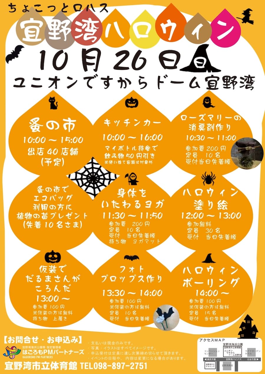 2025年10月26日(日)、「ちょこっとロハス 宜野湾ハロウィン」がユニオンですからドーム宜野湾にて開催される。屋内開催なので、雨の日や暑い日でも安心。