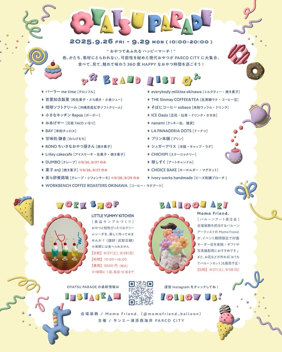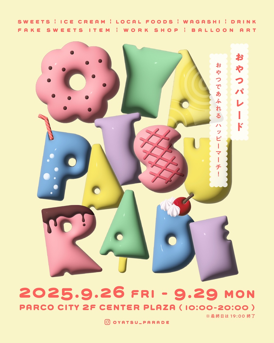 2025年9月26日(金)~9月29日(月)の4日間、サンエー浦添西海岸パルコシティにて「OYATSU PARADE」が開催。