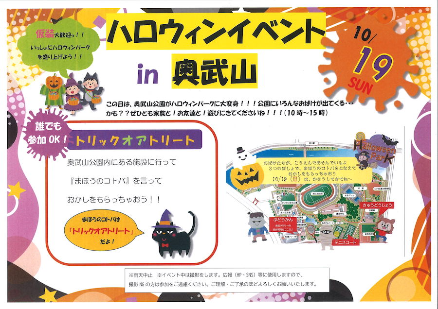 参加は無料。公園のおばけと一緒に写真撮影すれば、ハロウィンの思い出作りにもぴったりだ。ぜひみんなで仮装して、ハロウィン気分を盛り上げよう。