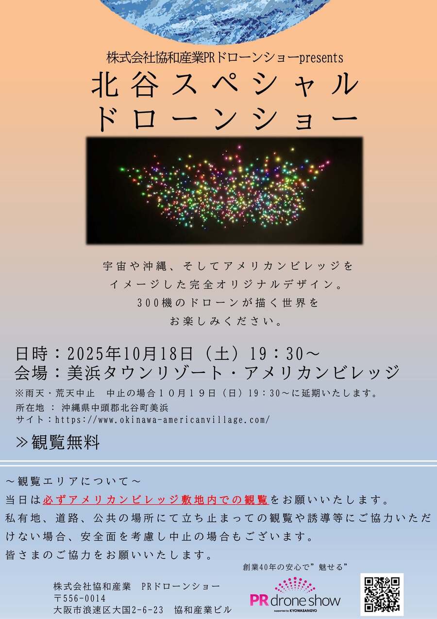 2025年10月18日(土)、北谷町のアメリカンビレッジにて「北谷町スペシャルドローンショー」が開催される。