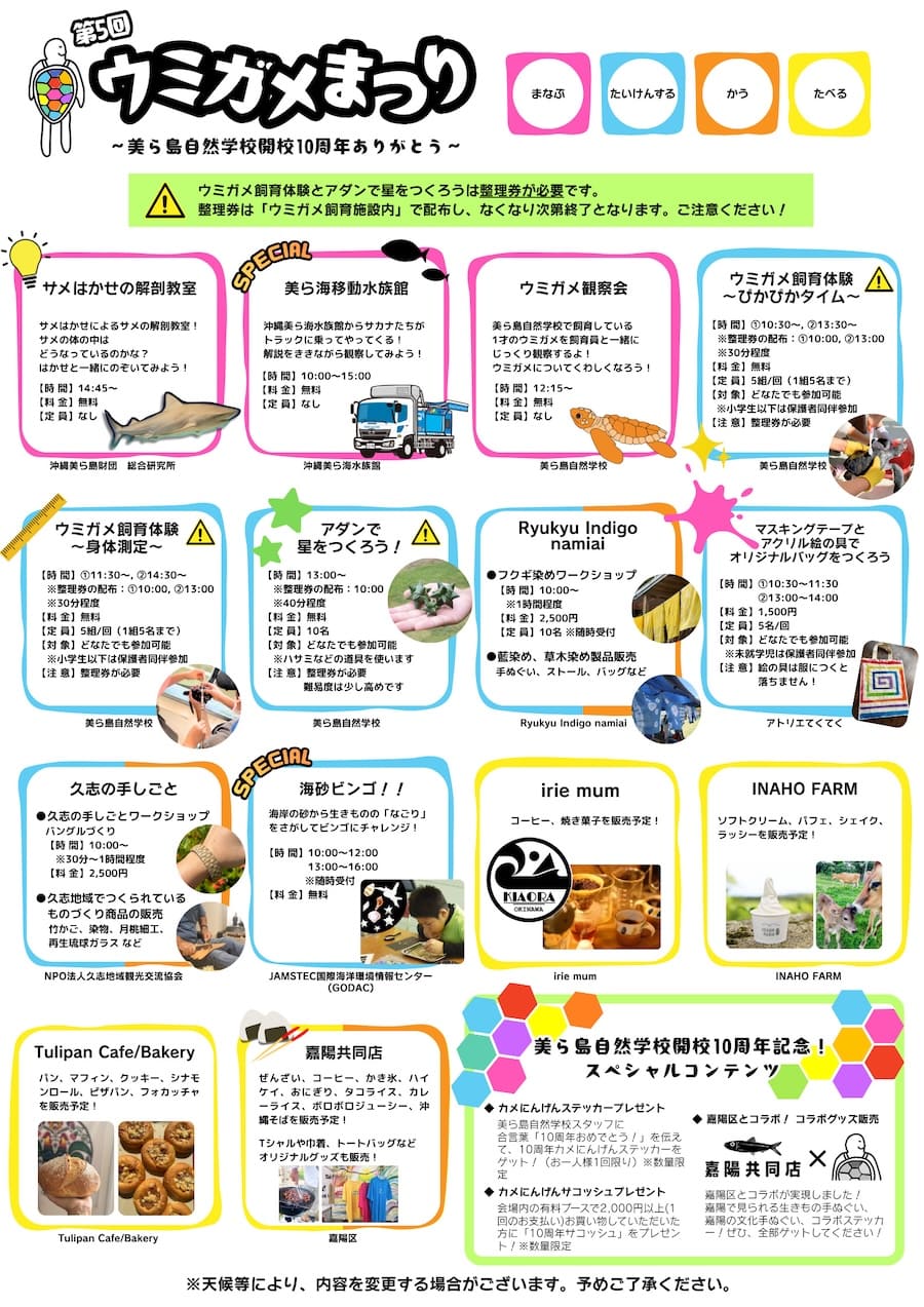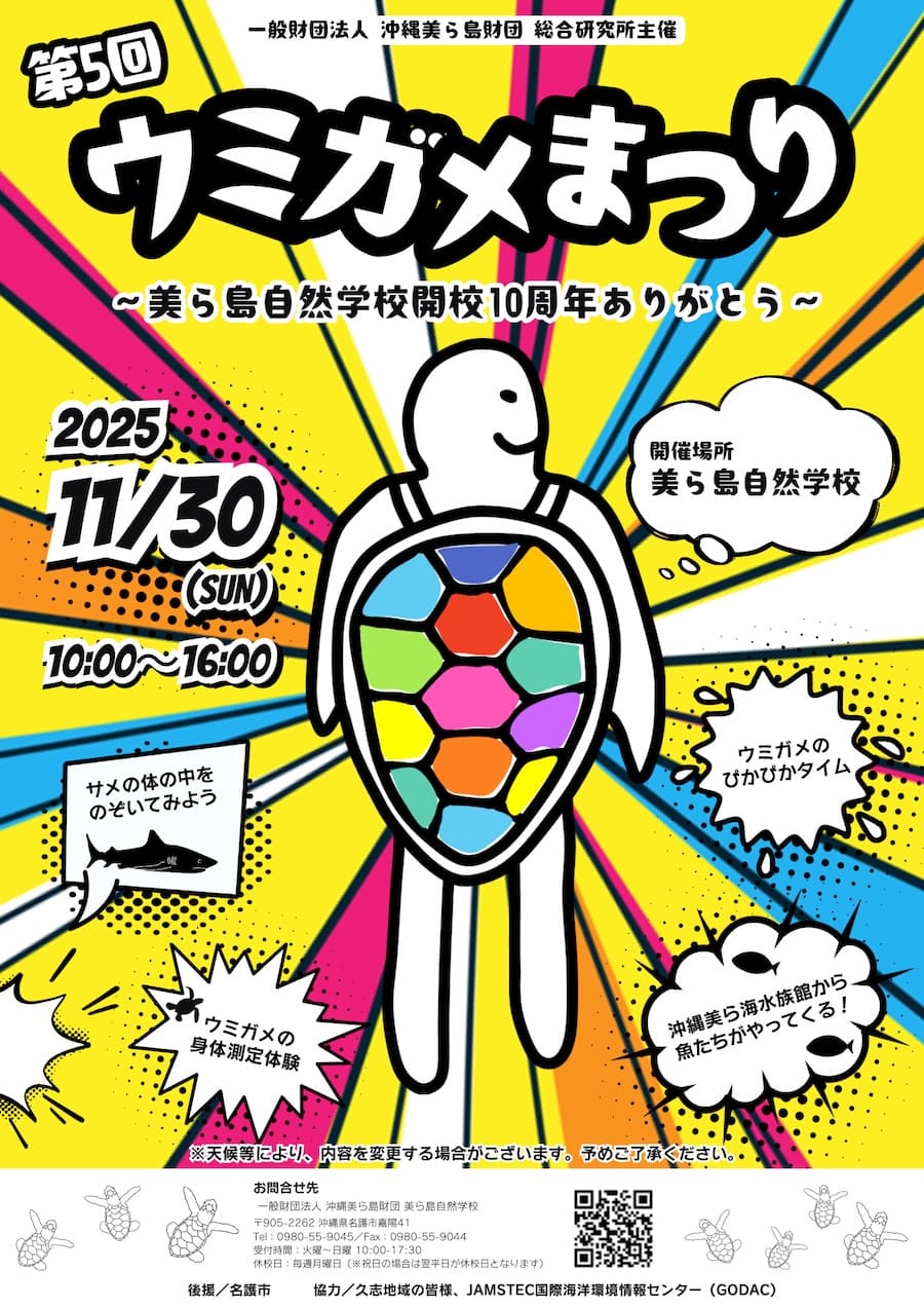 2025年11月30日(日)、名護市にある「美ら島自然学校」が主催するスペシャルイベント「第5回 ウミガメまつり~美ら島自然学校開校10周年ありがとう~」が開催される。