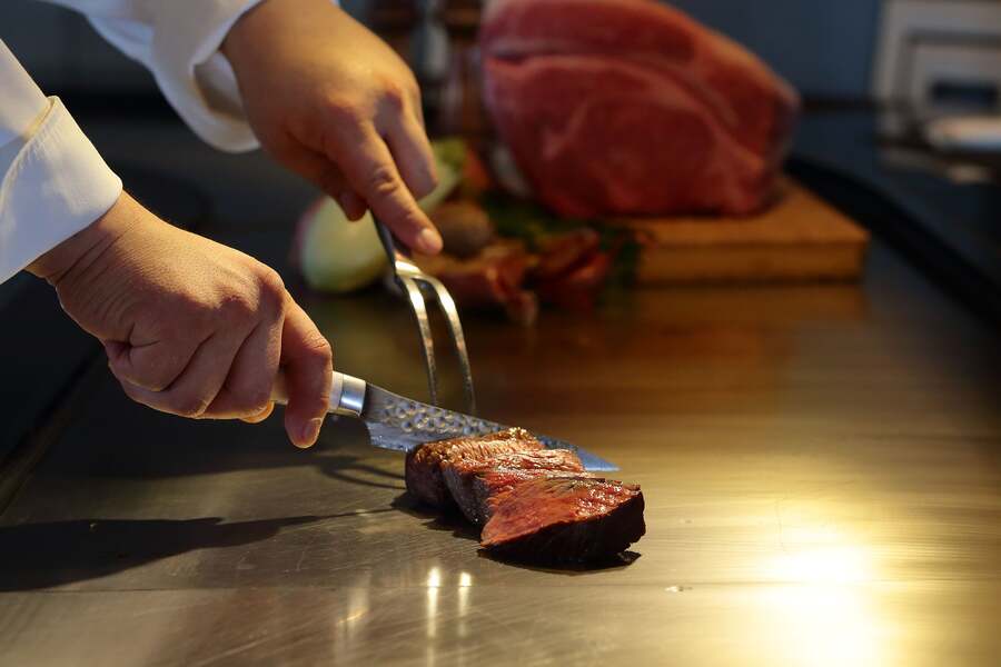 熟練シェフが目の前で食材にひと手間を加えるライブパフォーマンスは、五感で味わう舞台のよう。鉄板の焼き音、香ばしい香り、炎が織りなす臨場感で、食事の時間を特別なエンターテインメントへと昇華させてくれる。