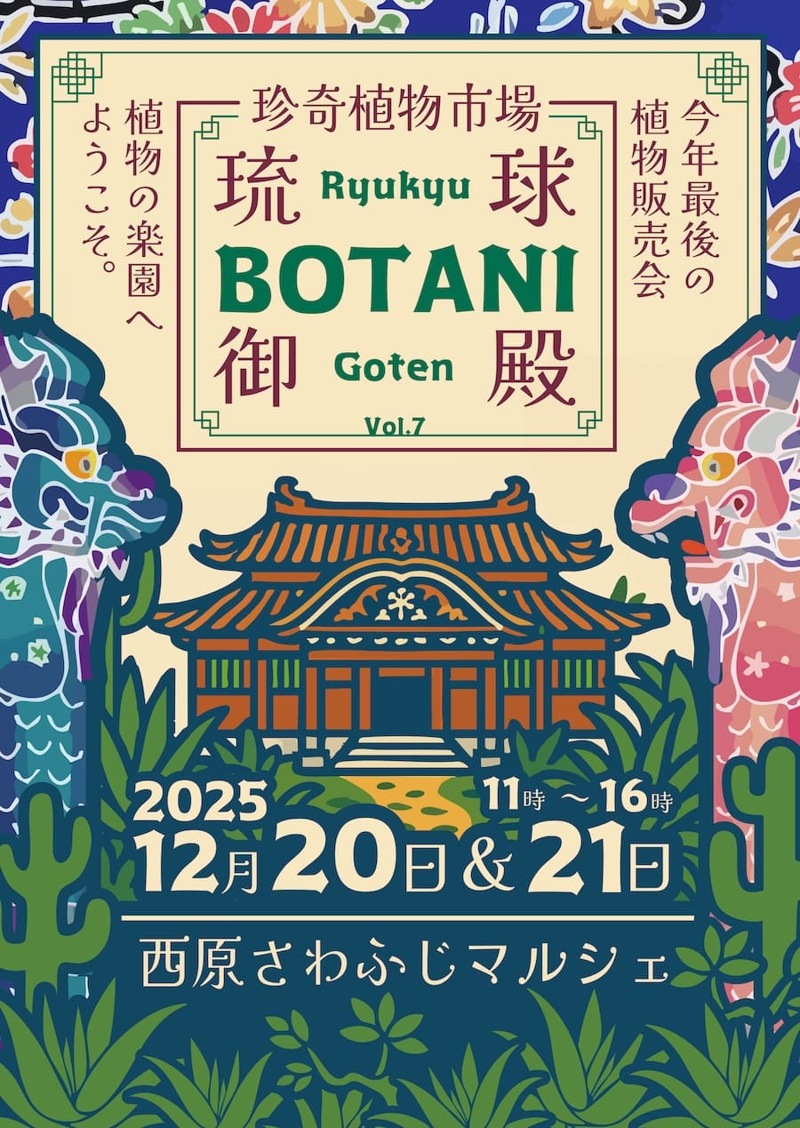 2025年12月20日(土)と21日(日)の2日間、西原さわふじマルシェにて「珍奇植物市場 ~琉球BOTANI御殿~」が開催される。入場は無料。