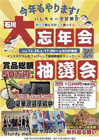 2025年12月28日(日)、うるま市役所の石川庁舎前にて「石川大忘年会2025」が開催される。入場は無料。