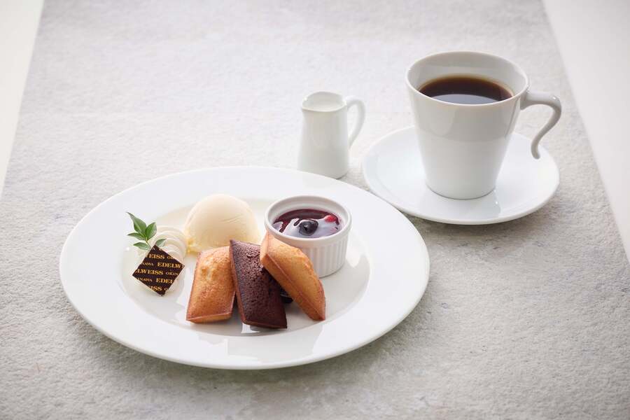 カフェコーナーでは旬のフルーツや沖縄素材を使った彩り鮮やかな贅沢パフェ、フィナンシェ・デセールなどこだわりのメニューを提供。スイーツとともに心地よいひとときを過ごせる空間が用意されているので、ティータイム利用やショッピング中の休憩にもぴったり。
