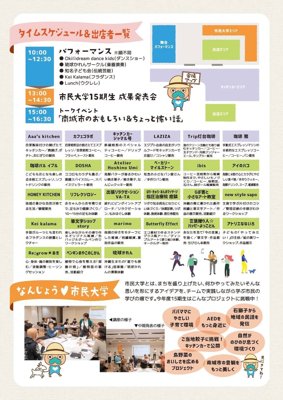南城市内で活動する市民団体やNPO、ボランティア団体が一堂に会し、地域をより良くするために動いている人たちの想いや活動を、見て・聞いて・体験できるイベント。