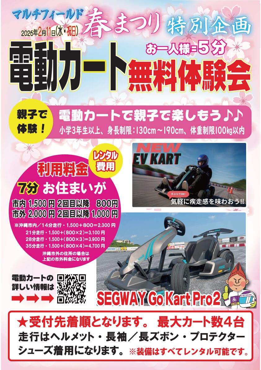 2026年2月11日(水・祝)、沖縄市にあるモータースポーツマルチフィールド沖縄で「マルチフィールド春まつり」が開催される。入場は無料。無料駐車場300台。