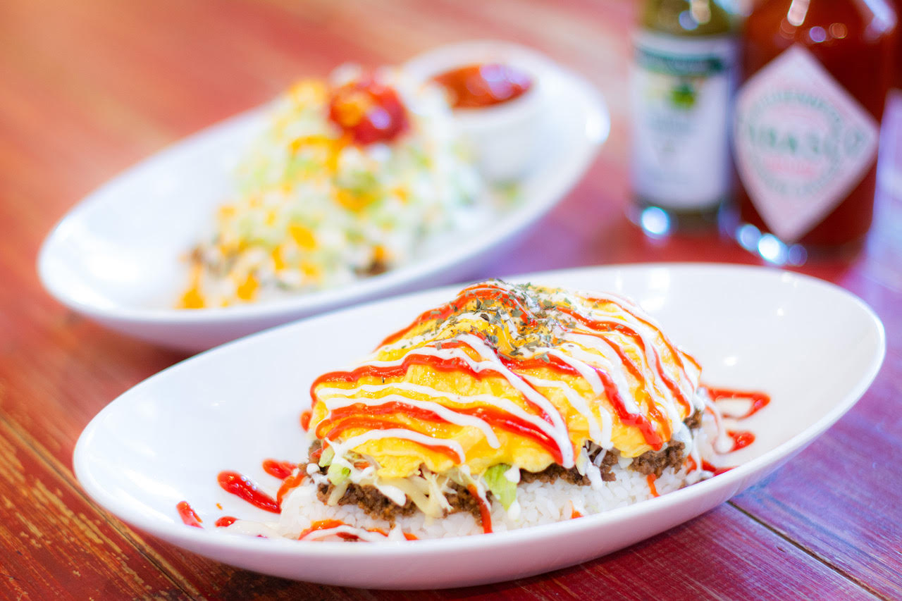 看板メニューの「オムタコ」は、ミートやソースと絡み合い、やみつきになる味わい。ミートは甘口・中辛・カレー味・チリビーンズの4種類から選べ、アボカドや照り焼きチキン、4種チーズなどトッピングも充実している。自分好みの一皿を見つける楽しさも魅力。