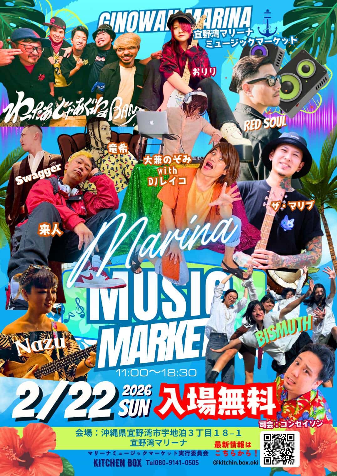 音楽・グルメ・遊びが一度に楽しめるイベント「Marina MUSIC MARKET」が2026年2月22日(日)に宜野湾マリーナで開催される。
