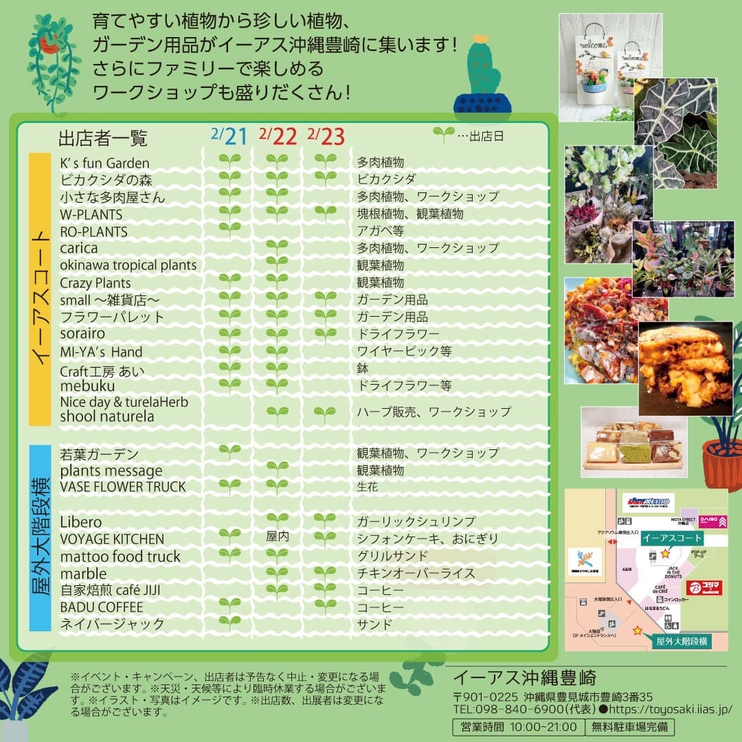 植物好きやガーデニングに興味がある人に嬉しいイベント「Plants & Garden marché」が、2026年2月21日(土)~23日(月・祝)の3日間、イーアス沖縄豊崎で開催される。
