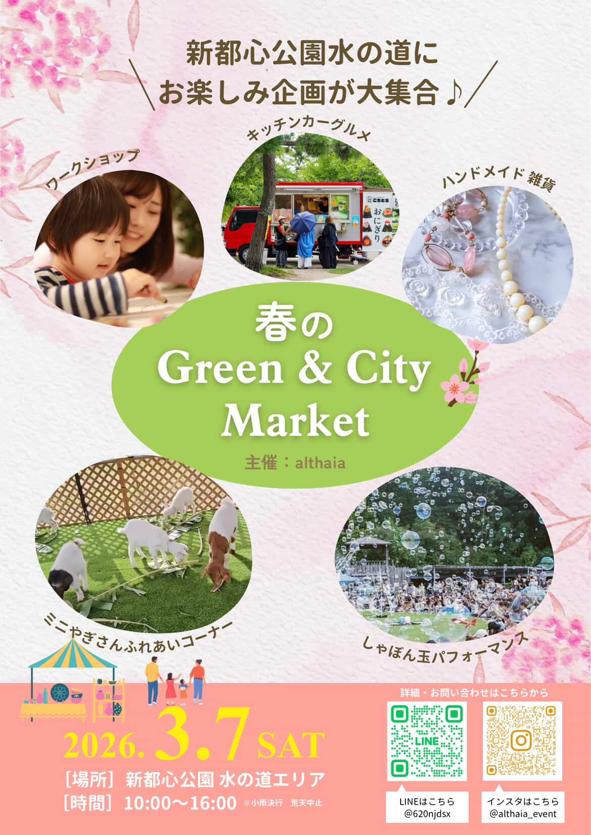 2026年3月7日(土)、那覇市の新都心公園・水の道エリアで、「春のGreen & City Market」が開催される。