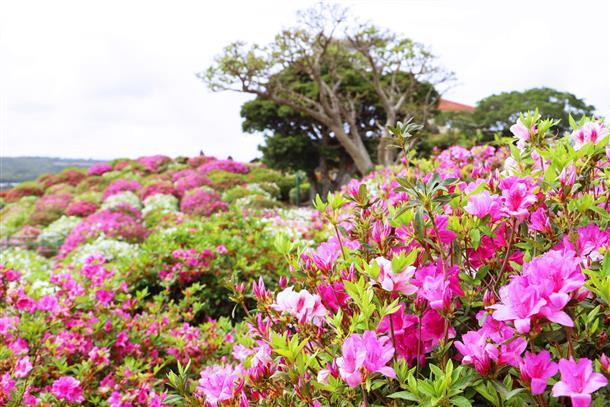 午後は「東村つつじ祭り」へ。日本で一番早い開花を迎える約5万本のつつじが一面に咲き、色鮮やかに咲き揃う光景はまさに絶景。他にも、「大宜味シークヮーサーパーク」と「道の駅 許田 やんばる物産センター」にも立ち寄る。
