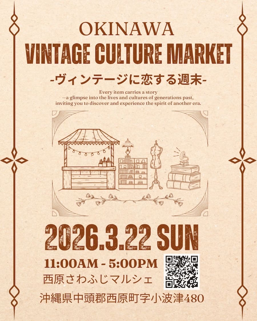 2026年3月22日(日)、西原さわふじマルシェにて「Okinawa Vintage Culture Market」が開催される。