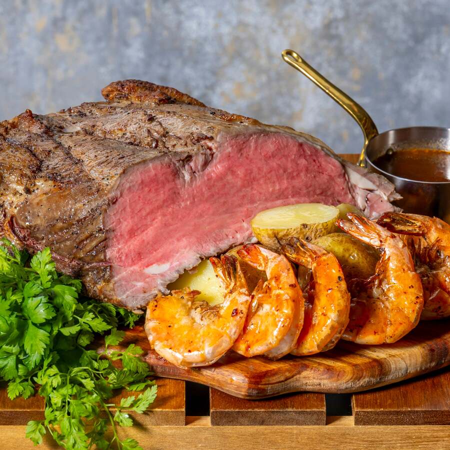 【ディナー限定】ローストビーフ&ガーリックシュリンプ、ローストポテト ケイジャン風味