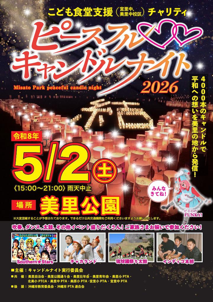 2026年5月2日(土)、沖縄市にある美里公園でチャリティイベント「ピースフルキャンドルナイト2026」が開催される。