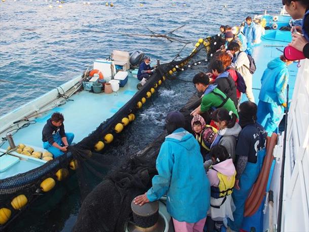 \ちゅらとくスタッフが体験してきました!/漁業体験は、出発地の都屋漁港から定置網が設置されているポイントまで船でお連れします。定置網施設の規模は、県内最大級。その大きさに圧倒されることでしょう。巨大な