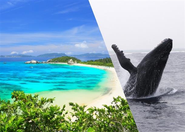 ★セルリアンブルーだけの特別ツアー★渡嘉敷島上陸&ホエールウォッチングツアーがセットで体験可能!渡嘉敷島には約2時間滞在♪各お申込みのコースで楽しもう!その後、クジラ探しの冒険へ出発。クジラを見られる