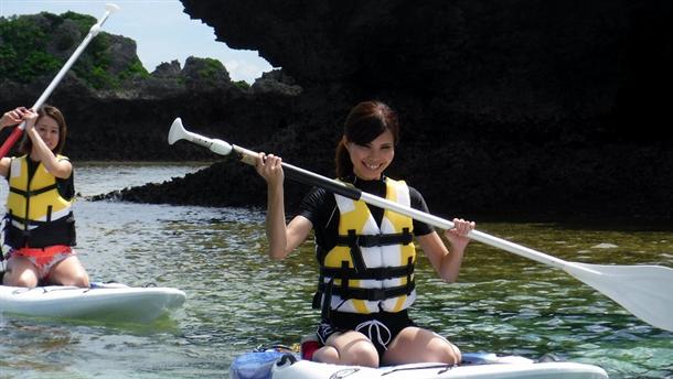 爆発的な人気で増えてきているSUP(スタンドアップパドル)は、ボードの上に立ちながら漕ぐというマリンスポーツで、まるで海の上を散歩している感覚です♪当プランでは初めてSUPを挑戦したい方向け★沖縄中部で最も有名かつ美しいポイントの1つ、青の洞窟のある真栄田岬で楽しむいろいろなプランをご用意しています。これを機会に、SUPを趣味にして健康増進してはいかがでしょうか☆◆◇◆ご注意◆◇◆※干潮時は深さが足りない為、ツアーを催行する事ができません。リクエスト受付時に、 予約の可否と合わせて、ツアー催行が可能な時間をお知らせいたします。①本ツアーは【事前支払い】プランです。お支払方法詳細は予約後に連絡します。※開催日当日に現金でお支払いをご希望される場合は、予約時または予約後にご相談ください。②海底はリーフなので必ずご自分のマリーンシューズをお持ちください。※マリーンシューズをお持ちでない方は一足500円でレンタルできます。③こちらのプランはウェットスーツレンタルは含まれておりません。冬のシーズン中、あるいはご希望の場合はオプショナル料金1,500円(現地払い)でレンタルと温水シャワーをご利用いただけます。◆◇◆◇◆◇◆◇◆