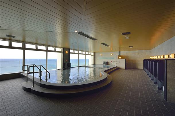 ゆったりとお湯につかりながら目の前の海や黄金色に輝く沈む夕陽をお楽しみください。