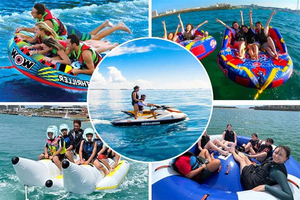 アメリカンビレッジ徒歩5分!家族や恋人、友達と年中遊べる海上遊園地♪年中遊べる海の公園は、ココだけ!強風や大雨の悪天候を除き、雨の場合もご利用可能!海上アスレチックとマリンアクティビティ2時間遊び放題プラン♪バナナ、マーブル、ハリケーン、マッチョ、SUPも遊び放題!!!お子様と一緒に大人も童心にかえってはしゃいじゃおう!うみんちゅワーフ館内にあるマリン受付カウンターで受付を済ませたら、フィッシャリーナ号に乗ってあっという間に海上アスレチックへ到着!ライフジャケットを着用していただくので、泳ぎに自信のない方やお子様も安心です。シーパーク北谷では、子供用のウェットスーツも完備してますので、お子様の防寒対策も万全で遊べますよ♪\本プランはちゅらとく限定の特別プランで2時間遊び放題!/海に浮かんでSUP:大型のSUPなので初心者の方も安心してトライ! 子どもから大人まで遊べます♪区域内には熱帯魚も!?バナナボート:最大8人乗りのみんなでワイワイ楽しめる王道アクティビティマーブル:強烈な遠心力で振り回される絶叫ライド!ハリケーンボート:ジェットで引く乗り物の中でも最大級☆▼集合時間9:00/ 10:00/ 11:00/ 12:00/ 13:00/ 14:00/ 15:00/ 16:00(船の出航は受付→着替え後準備が出来次第毎時30分に出航となります。)