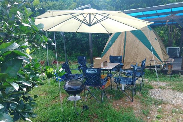 \名護のシークヮーサー畑でカジュアルグランピング♪/シークヮーサーの名産地「名護市」のシークヮーサー畑で、農家気分のグランピング体験!テント・寝具など必要な道具は揃ってるので手ぶらでOK!シークヮーサーの木々の持つ爽やかな香りに包まれながらお楽しみ頂けます!『沖縄は海だけではない!!』山の魅力発信中!【施設情報】・農場BAR・野菜無人販売・トイレあり・炊事場あり・温水シャワーあり\アメニティ充実/バスタオル・シャンプー・コンディショナー・ボディーソープ歯ブラシ・髭剃り・ドライヤーあり\おすすめポイント♪/▽JAZZが流れる落ち着いたBARで 他にはない優雅な時間をお過ごしいただけます♪▽インターネットFree Wi-Fi使えます! お仕事が忙しい方もシークヮーサー畑でワーケーション♪▽グランピング内にエアコン完備!(クーラーのみ) 暑い日も安心してお過ごしいただけます♪▽焚火(薪)無料▽嬉しい食材・ドリンク持ち込み自由!▽クーラーボックス貸出し無料※BBQ機材一式・食材はオプションとなります。 ご希望の方は予約時に備考欄へその旨ご記載ください。※アルコール類、ソフトドリンクは現地でご購入も可能です。※お食事、お飲み物のお持ち込み可能です。