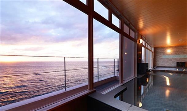 ゆったりとお湯につかりながら目の前の海や黄金色に輝く沈む夕陽をお楽しみください。