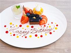 アニバーサリープレート1枚:\1,000・オプションにて「アニバーサリープレート」をご注文の際は、お祝い内容・ご希望のメッセージの記載をお願いいたします。記載のない場合は「Happy Anniversary」にてご用意させていただきます。