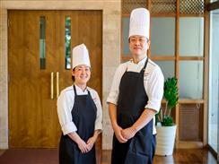 シェフパティシエ 森 真吾1994年のキャリアスタート後、福岡の名門ホテルにて23年間、ホテルパティシエとしての技術と感性を磨く。2017年よりカヌチャリゾートのシェフパティシエを務める。 現在は夫婦でカヌチャリゾートのパティシエとして厨房に立ち、妥協なく選び抜いた素材と繊細な技にリゾートの感性を加えた、「確かにおいしい」スイーツを生み出し続けている。