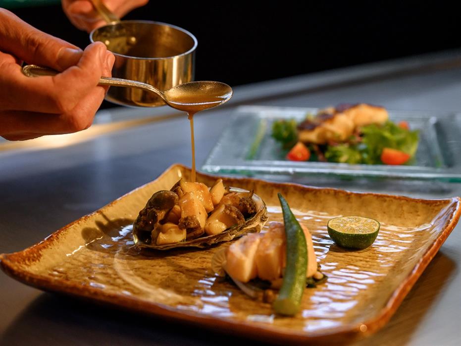 海の恵みを感じる魚介料理に、旨み際立つ帆立貝柱ソテー、特選黒毛和牛をご用意いたしました。