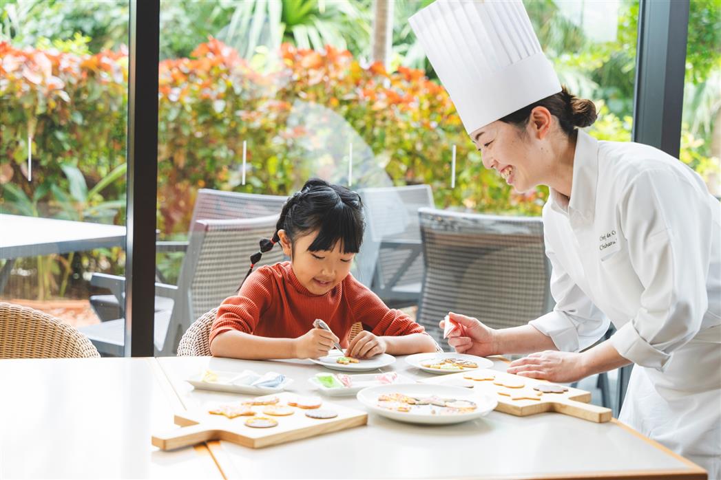 ★ちゅらとく限定 最安値 (※90分制)大人 1766円 OFF / 小人 883円 OFF大人1名につき幼児1名様無料★お子様向け体験プログラム *毎回開催!※14時までのご利用となります。(追加料金・予約不要)・プロのシェフが教えるドーナツデコレーション♪・スタッフが丁寧にカクテル作りを教えます!