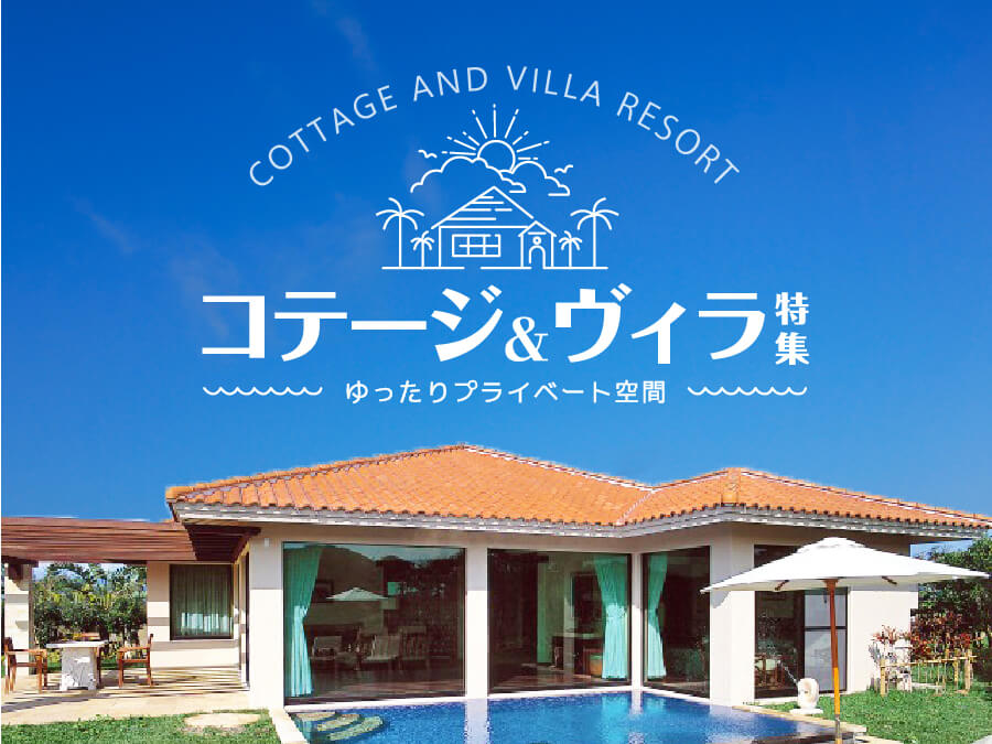 全室プライベートプールを完備するホテルや、天蓋付きベッドを設けたお部屋、子ども連れにうれしい広々とした和洋室など、別荘のようなコテージで贅沢な時間を過ごせるホテルを厳選して紹介。