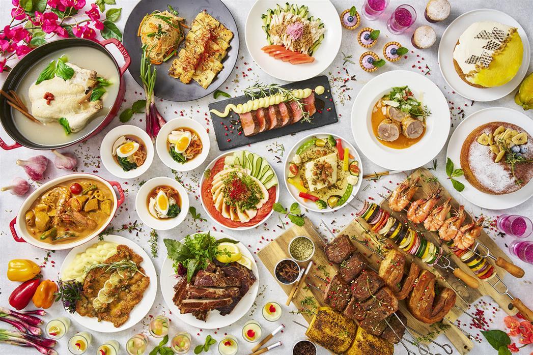 オーダー制のサクサクの天ぷらとあぐー豚のしゃぶしゃぶや季節に合わせたお料理の数々、ひとつひとつ職人が手作りで仕上げたメニューの他、長年人気の黒糖ぜんざいやパティシエ特製のスイーツがビュッフェ台を彩ります。