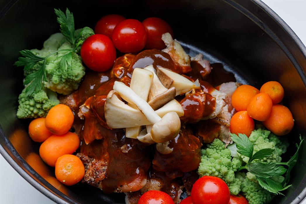 ◆香ばしく焼き上げたチキンに、濃厚なキノコソースをたっぷり。芳醇な香りが食欲をそそる贅沢な一皿です。