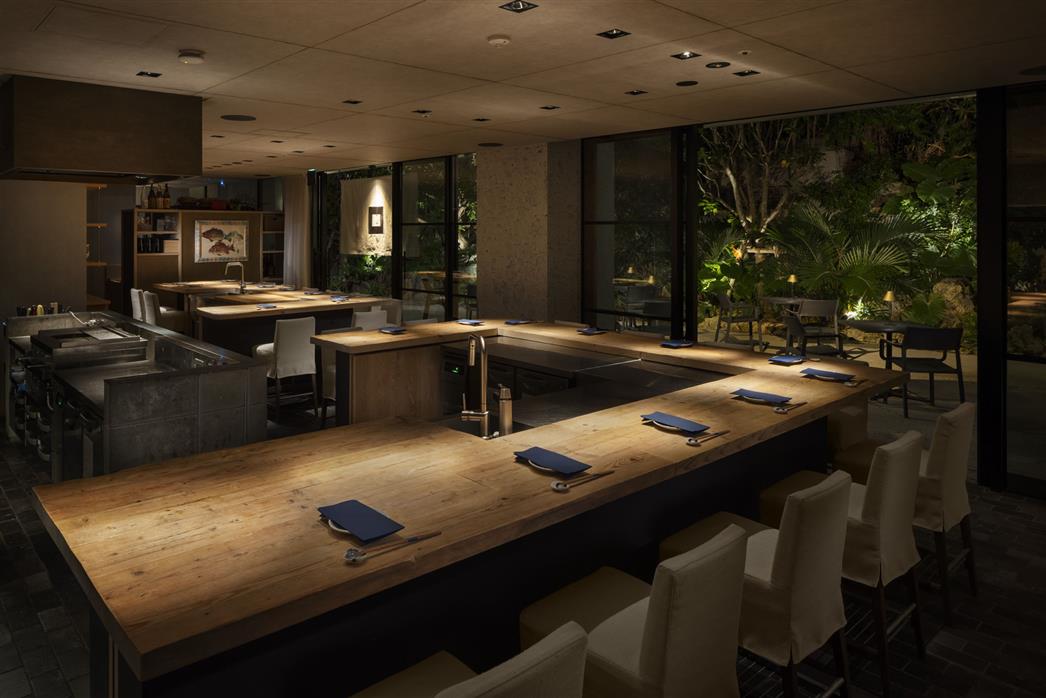 鉄板の上で仕上げられるお料理を眺めながらお楽しみいただけます。