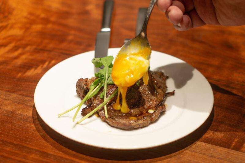 今回は特別メニューとして、お一人様一皿限定で国産黒毛和牛サーロインのすき焼き風チャコールグリルを提供いたします。