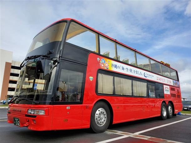 沖縄本島に1台しかないレアバス!真っ赤なボディが目を引く2階建て屋根なしオープントップバス