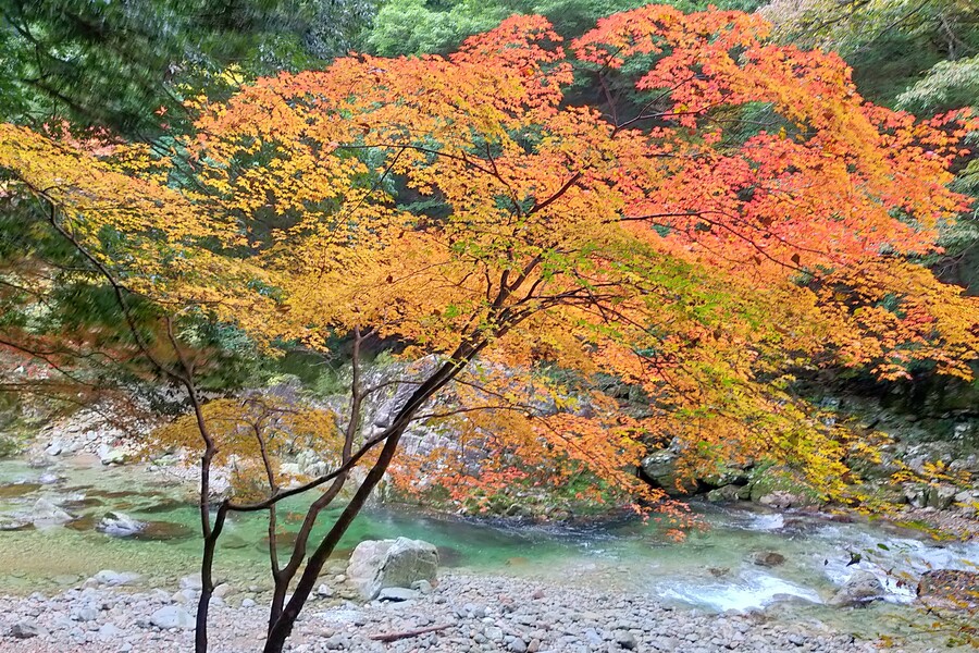 赤や黄色に燃える木々と、清らかな渓谷のコントラストに心底癒やされます★