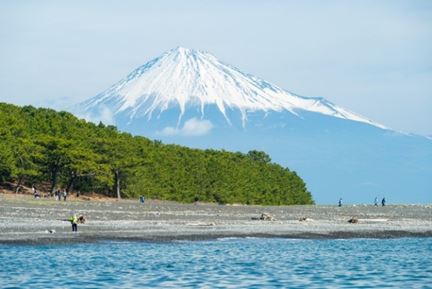 約5kmの海岸線に数万本の松が生い茂り、富士山と海の絶景を楽しめます。