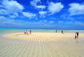 ヨロン島の大金久海岸沖合い約1.5kmにぽっかりと出現する真っ白な砂浜!